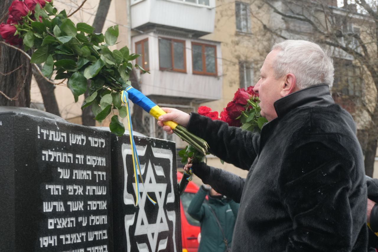 Напередодні Міжнародного дня пам’яті жертв Голокосту, у Прохоровському сквері міста Одеси відбулася церемонія покладання квітів та вшанування пам’яті мільйонів невинних людей, знищених нацистським режимом.
