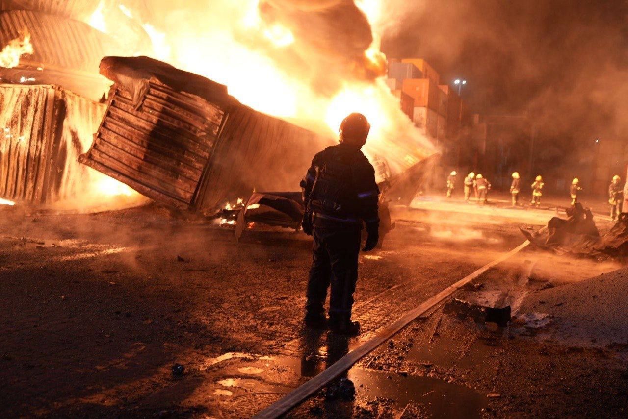 У портовій зоні спалахнули контейнери та чотири легкові автомобілі, пошкоджено два ангари. У житловому секторі пошкоджено фасад, дах та скління приватного житлового будинку, зруйновано недобудову. Також сталося загорання балкону та газової труби у багатоповерхівці.