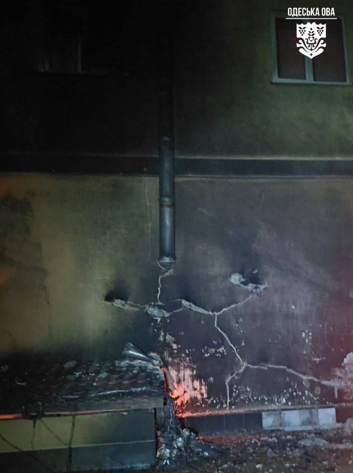 В Одеському районі безпілотник влучив у багатоповерховий житловий будинок. Пошкоджено дві квартири, фасад будівлі, скління, приватний транспорт, припаркований поруч.