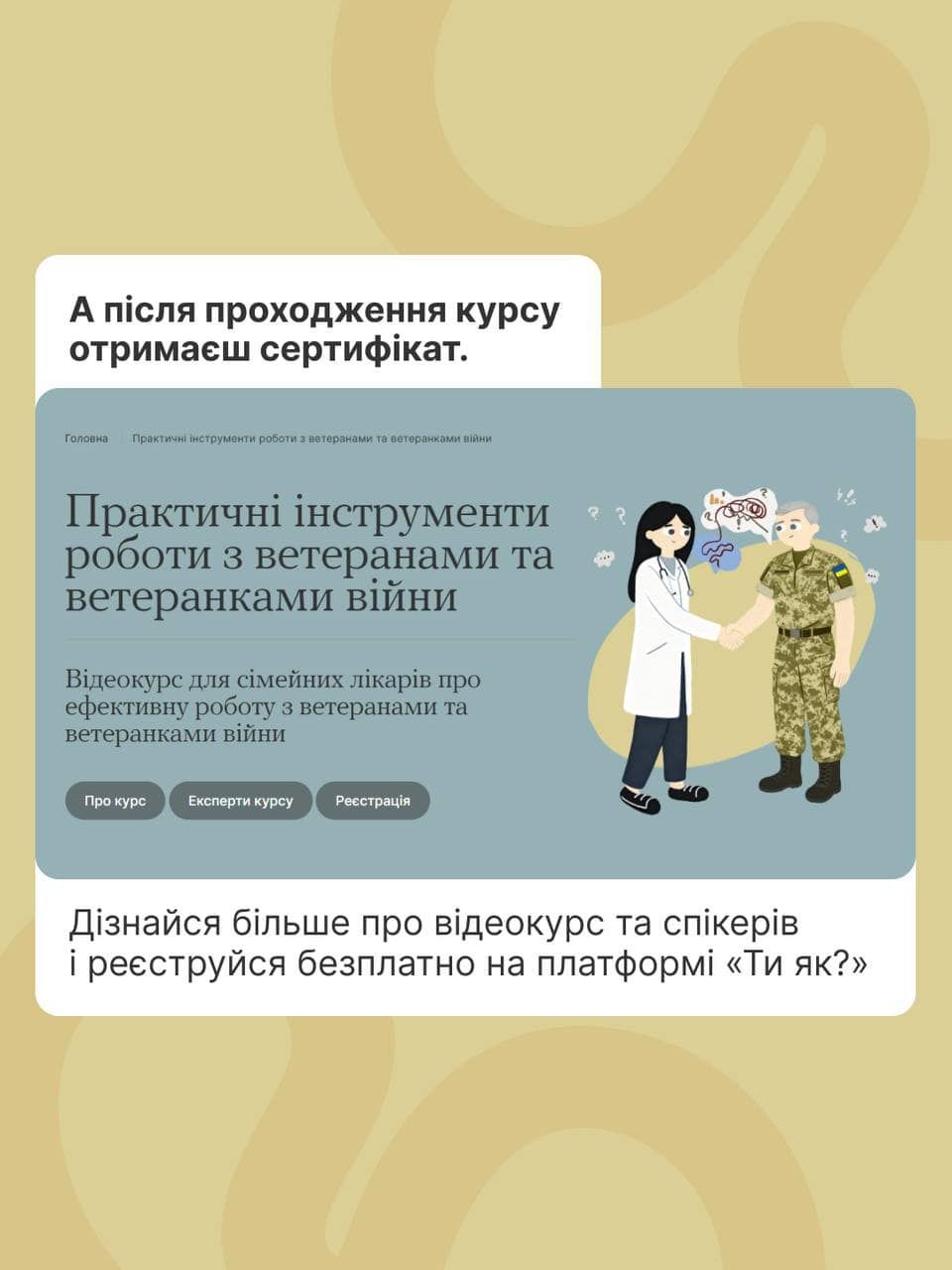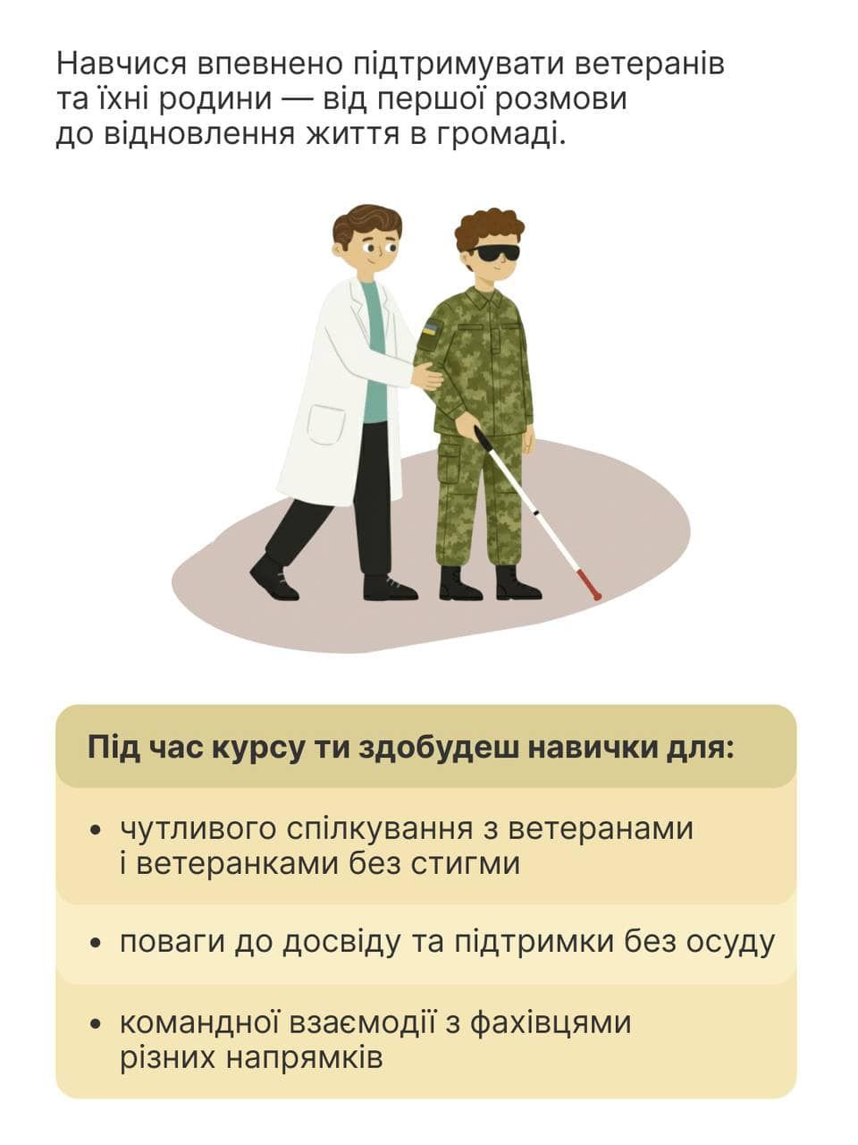 Якщо ти медпрацівник та у своїй роботі хочеш впевненіше спілкуватися з ветеранами і ветеранками — долучайся